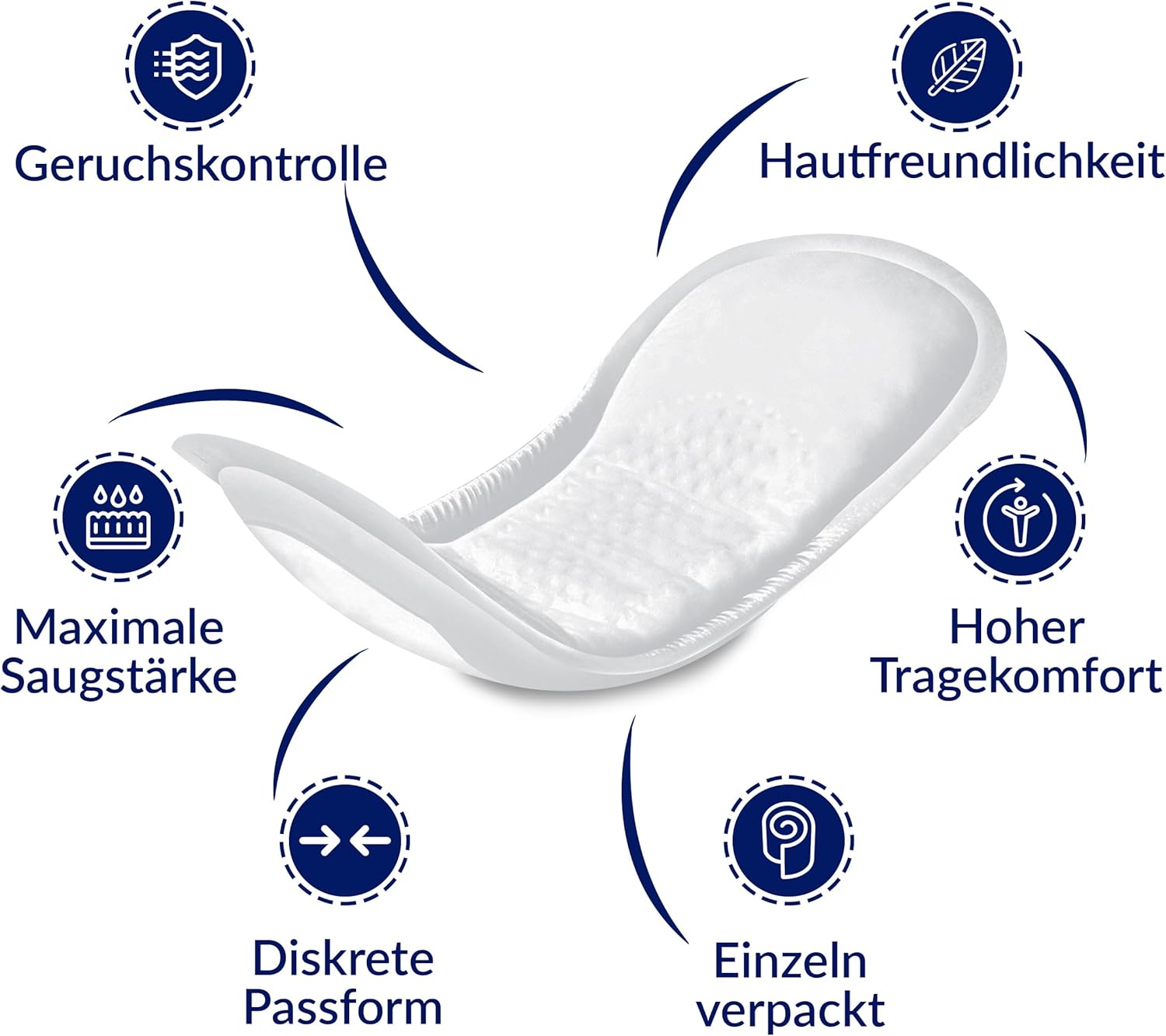 Unsere Inkontinenzeinlagen werden wir normale Slipeinlagen verwendet. Sie saugen zuverlässig die Flüssigkeiten ein und verhindern das Auslaufen und unangenehme Gerüche. Wir empfehlen diese Einlage für die nächtliche Anwendung.
